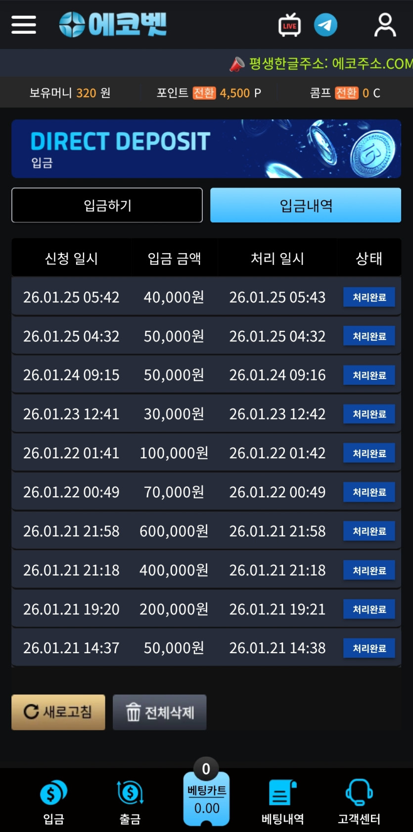 사대 잘맞고 입금 환전 처리 확실!
