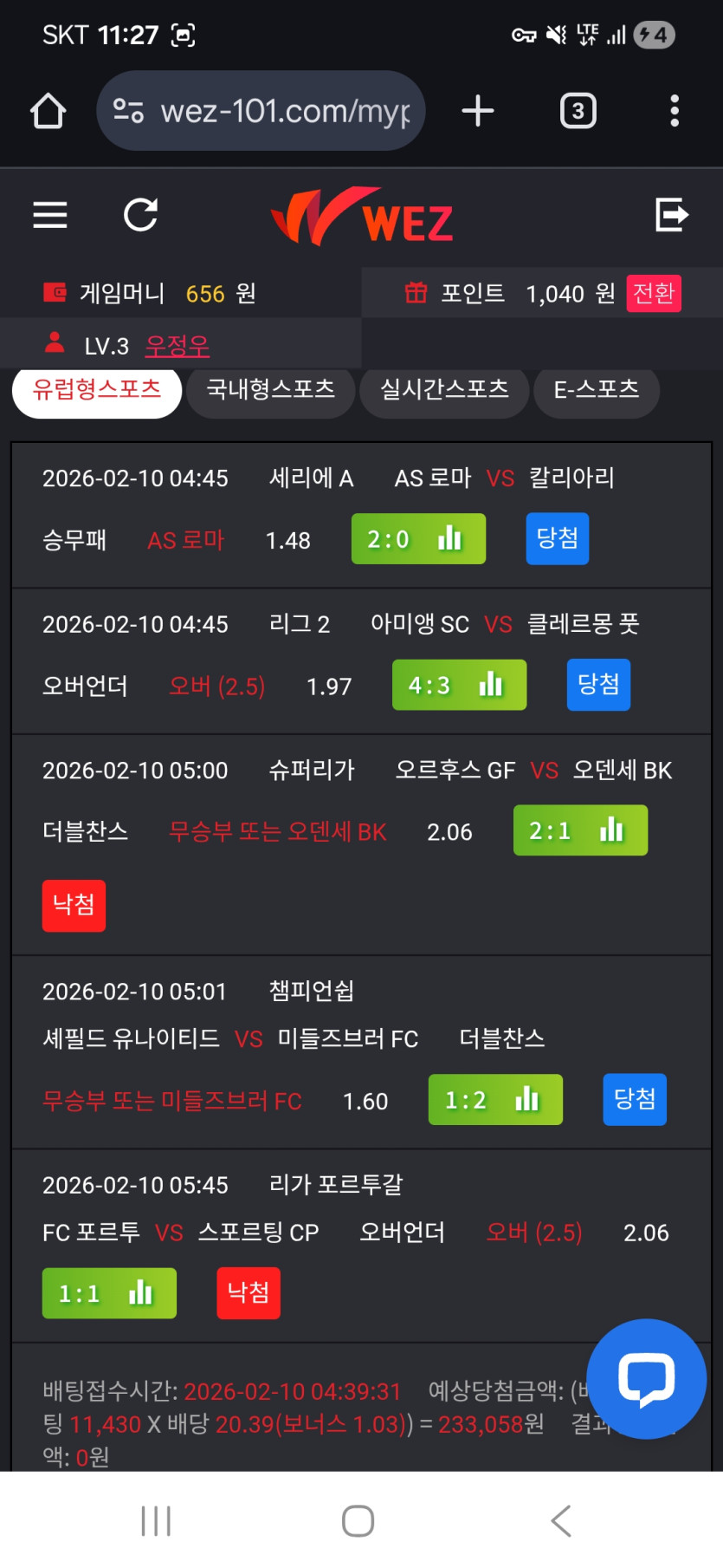 사이드배팅으로 전후반 팀득점 스코어맞추기 양득 홀짝 등등